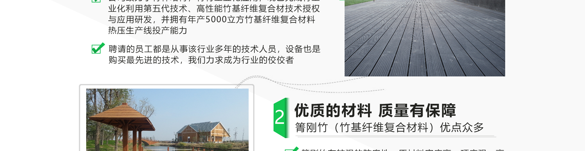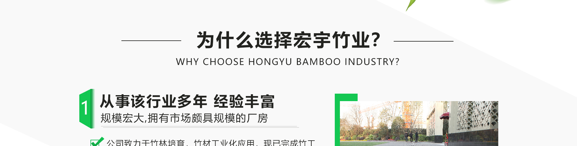 宣城宏宇竹業有限公司位于“華夏毛竹首鎮”的安徽省宣城市涇縣蔡村鎮,公司致力于竹材工業化應用與研發(fā),已完成竹工業化利用第五代技術-竹基纖維復合材技術應用研發(fā),并獲得2015年度國家科技進步獎二等獎。公司擁有行業幅面3850*1320mm的5400噸壓力的20層熱壓機,可以直接壓制3850*1180*52的坯板,具備年產10000立方米的生產能力。宏宇竹業以“領導竹材恒久價值”為己任,以匠心的工藝,銳意進取的管理團隊打造一個產品多樣化、市場多元化的科技型企業。公司從成立之初一直重視品牌建設,公司注冊商標“箐剛“竹,致力打造戶外竹材優(yōu)異品牌,讓宏宇竹業深入每一個消費者的心。